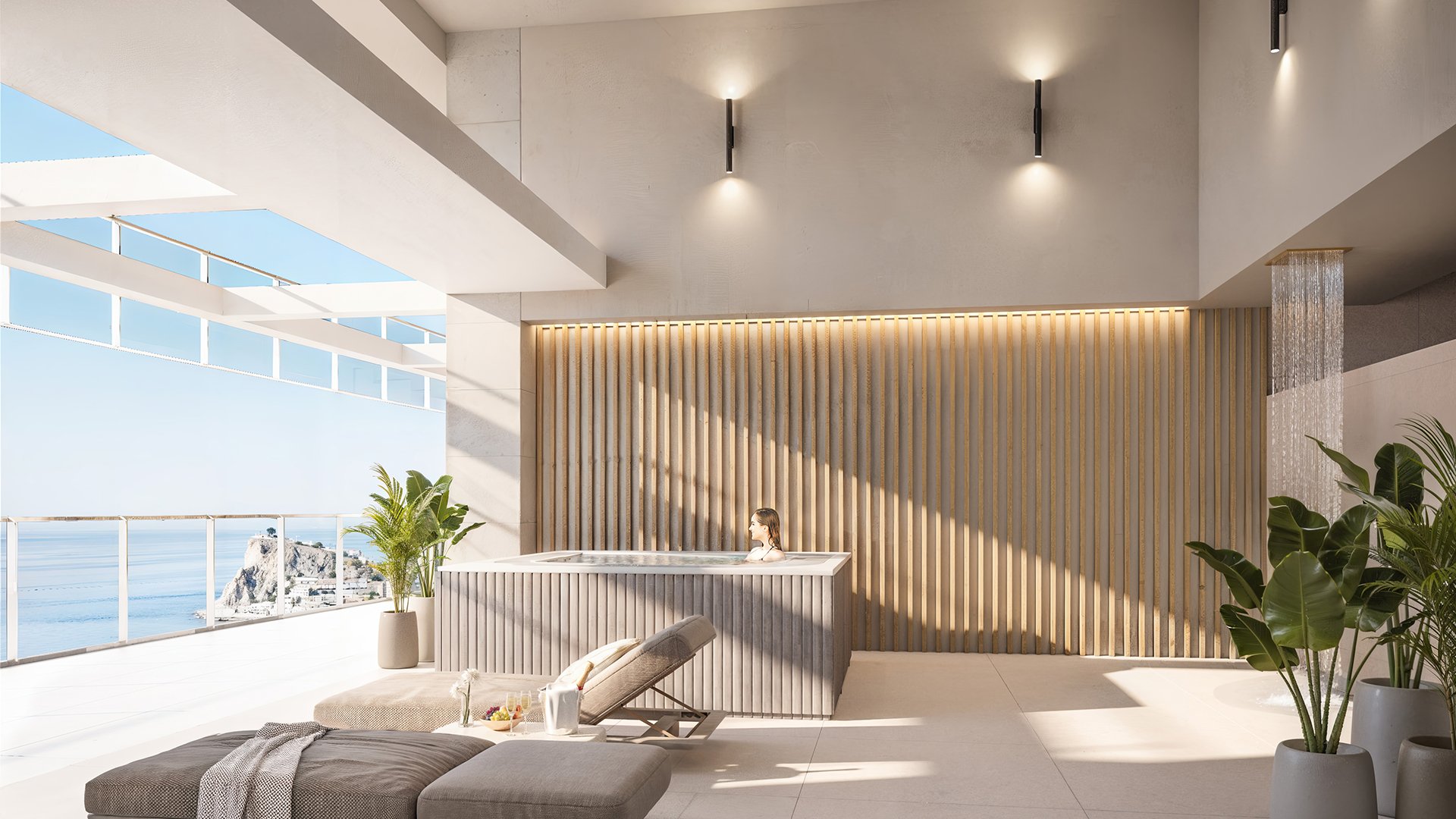 A new skyscraper in Benidorm, 230 meters high, will have 64 floors and will be one of the tallest in Spain. The project includes 260 apartments with 1, 2, 3, and 4 bedrooms and 1, 2, and 3 bathrooms, as well as four basement floors with parking and amenities. Residents will have access to swimming pools, a gym, sports fields, and even a private cinema. A sky bar and observatory will be located on the upper floors.
