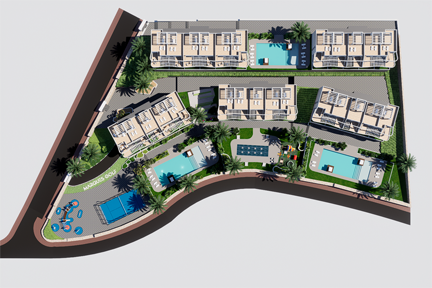 A complex of 2-bedroom apartments and penthouses. Consists of 5 blocks. The complex features 3 swimming pools, parking, a volleyball court, and outdoor exercise equipment. Phases 1 and 2 of the project have already been sold, and phase 3 is currently available.