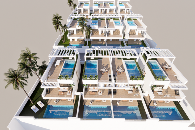 A 3-bedroom bungalow in phase 5 of the project. The project consists of 6 phases. Bungalows in phases 5 and 6 are available for sale as of November 2025. These bungalows have 3 bedrooms and 2 bathrooms. The new residential complex consists of 60 bungalows with 2 or 3 bedrooms and 2 bathrooms, all with access to common areas and a swimming pool. Some units also have a private pool.