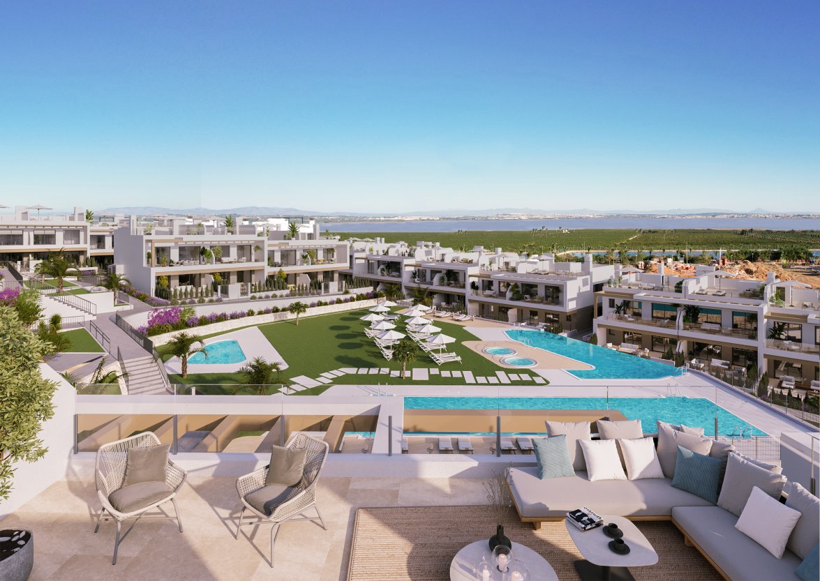 This residential complex in Torrevieja is a bright and modern complex surrounded by nature and located in an area with significant urban development potential, just 1 km from the Pink Lagoon and the Torrevieja Salt Flats.
