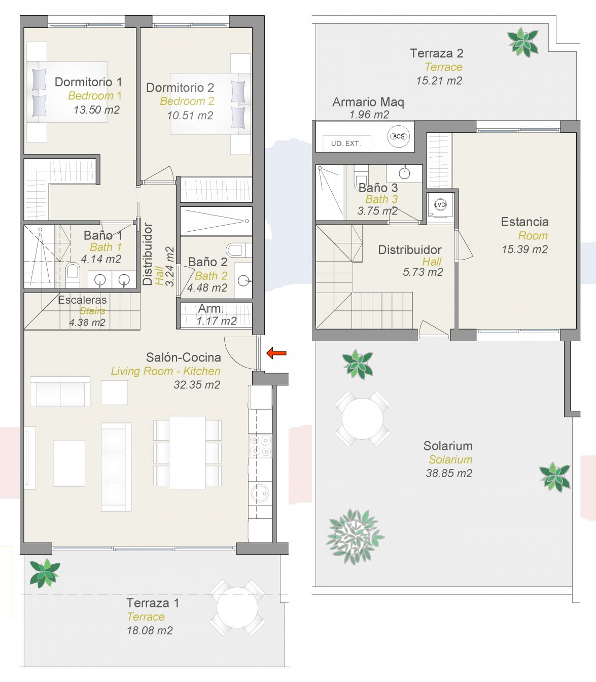 Todos los apartamentos están equipados con modernas comodidades para una vida cómoda: cocinas totalmente equipadas con electrodomésticos Bosch, aire acondicionado, persianas eléctricas, suelo radiante en los baños y un sistema inteligente de control de iluminación y persianas mediante una aplicación móvil. Además, se incluye la preinstalación de un jacuzzi en las terrazas.