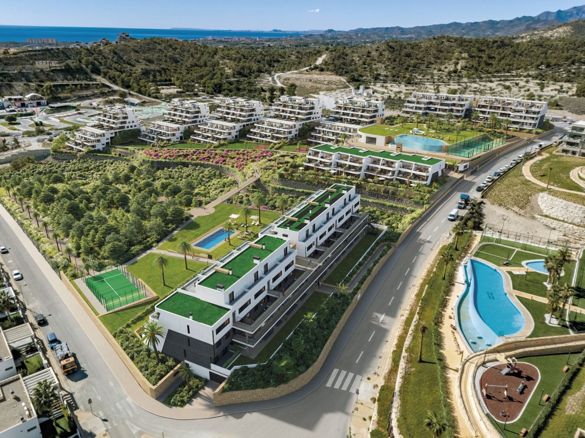 Новый жилой комплекс в Финестрате. Здесь представлены пентхаусы с 3 спальнями и квартиры с 2 и 3 спальнями на первом этаже с садом. Все с видом на море. Все с большими террасами. Открытая планировка, ничем не заслоняющая вид. Расположен в 3 км от моря.