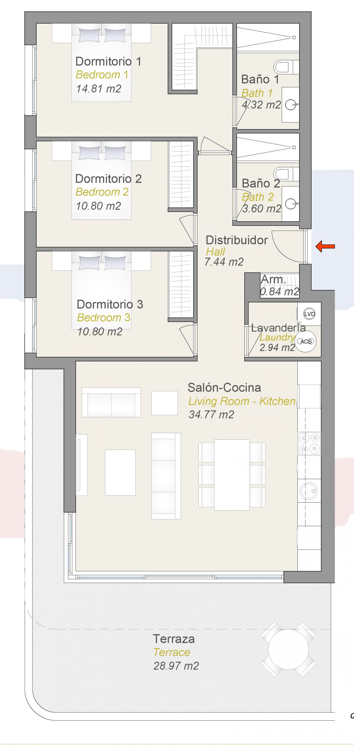 Апартаменты с 3 спальнями в Финестрате
