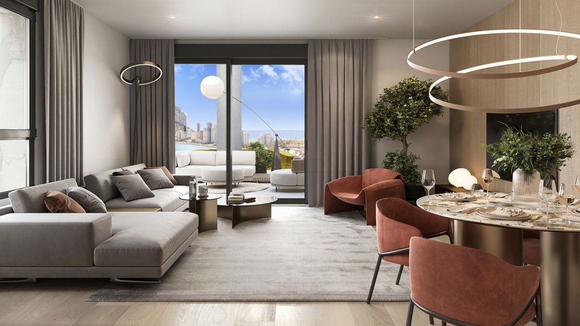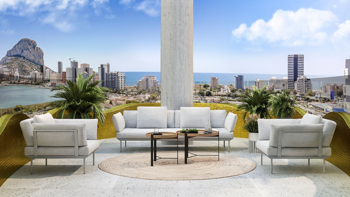 Апартаменты в комплексе в Кальпе. В каждой квартире есть большая терраса, откуда открывается круговой вид на все самое лучшее, что есть в Кальпе: пляж Ареналь, пляж Фосса, лагуну Лас-Салинас и, конечно же, Пеньон-де-Ифач.