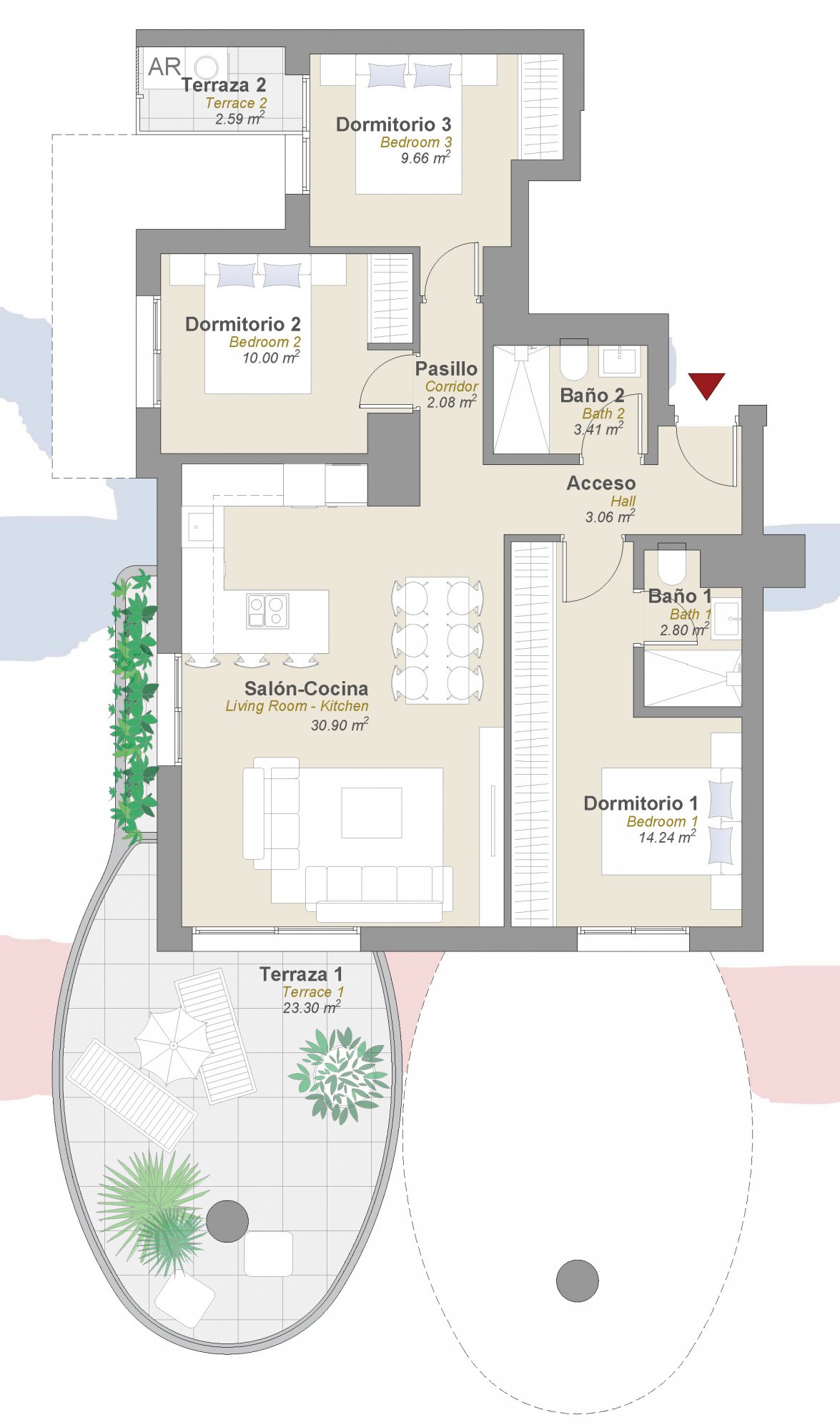 Апартаменты с 3 спальнями с палисадником в Кальпе